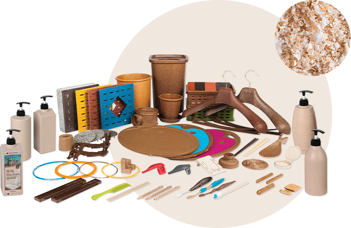- WPC (Wood Plastic Composite, 합성목재)는 간벌목 및 원목 제재 시에 나오는 톱밥, 대패밥 등의 부산물들을 업사이클링 시키고 고분자 수지와 특수 혼련 공법을 통해 결합하여 만든 친환경 신소재입니다. 도일 WPC는 FSC 인증받은 목분을 사용하고, 인체 유해한 물질이 전혀 없습니다. 또한 압출, 사출, 블로우 몰딩 제품에 이르기까지 다양하게 적용 가능합니다. 목분 함량은 적용 제품에 따라 20%에서 최대 80%까지 가능합니다.